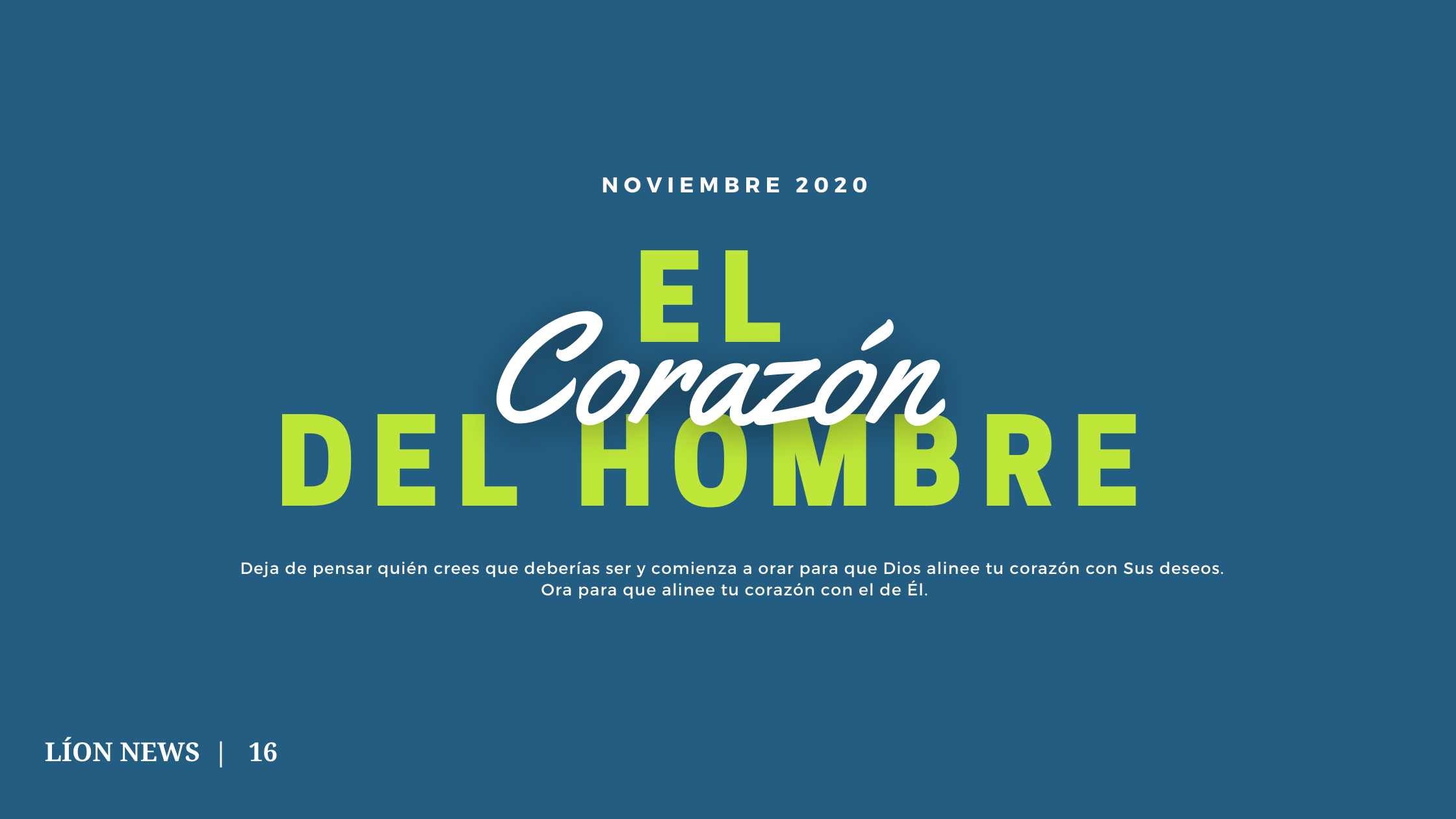 En el libro de Jeremías, encontramos que Dios nos está llamando a realinear nuestro propósito, nuestros deseos, nuestro corazón hacia Él, para tener una «un solo corazón y un solo propósito» hacia Él. «Les daré un solo corazón y un solo propósito: adorarme para siempre para su propio bien y el bien de todos sus descendientes.» (32:39). Debemos amarlo por encima de todo. Deja de pensar en dónde estabas y dónde quieres estar. Deja de pensar quién crees que deberías ser y comienza a orar para que Dios alinee tu corazón con Sus deseos. Ora para que alinee tu corazón con el de Él. Y que Él se quede justo en el medio.