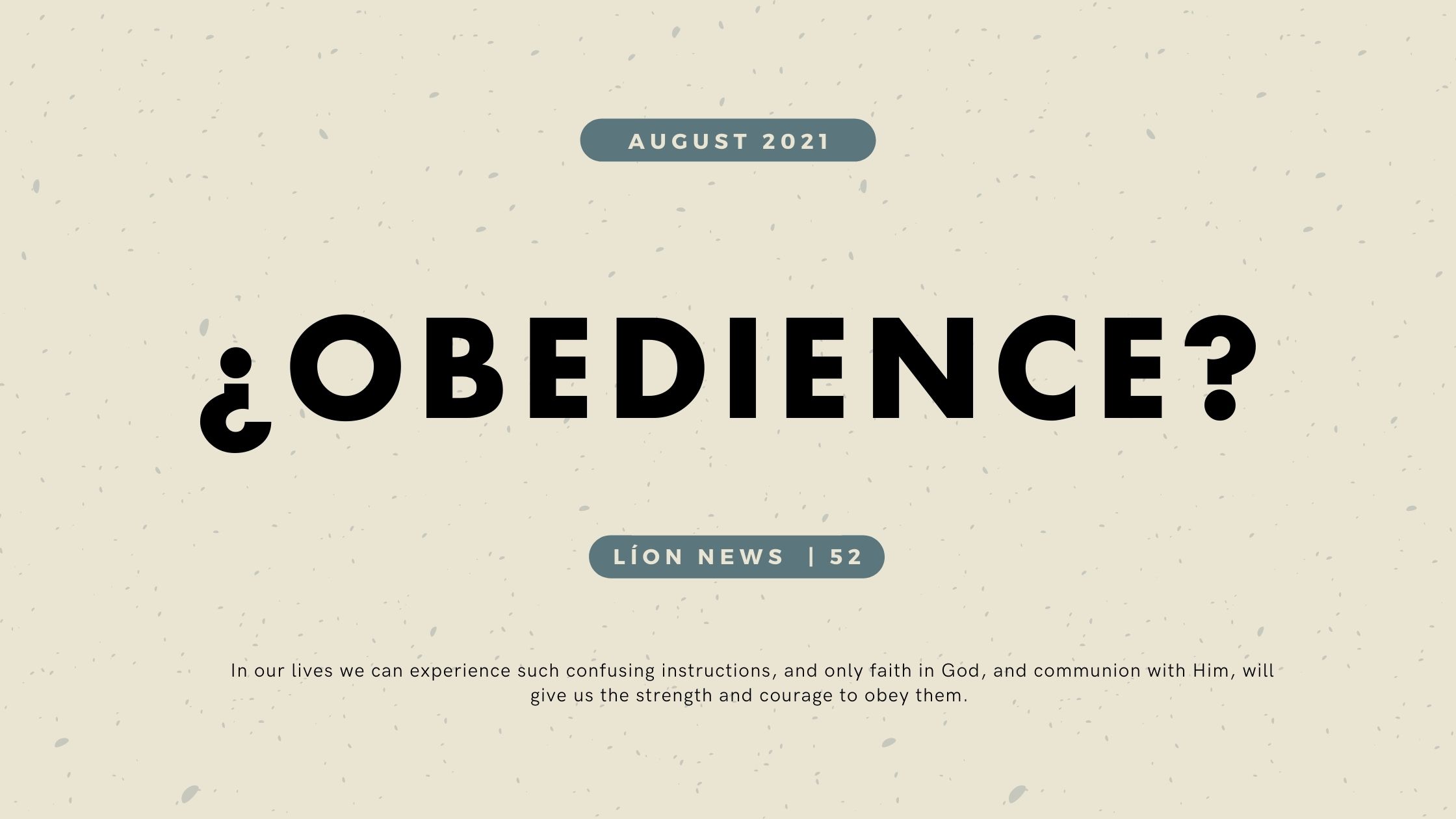 Creo que muchas veces confundimos la religiosidad con obediencia. Podemos pensar que obediencia es asistir al servicio los domingos, orar mecánicamente al amanecer o al anochecer y antes de los alimentos, escuchar música de adoración “porque es lo correcto para los cristianos”, y en general, tratar de comportarnos en forma adecuada. Pero, ¿es eso realmente […]